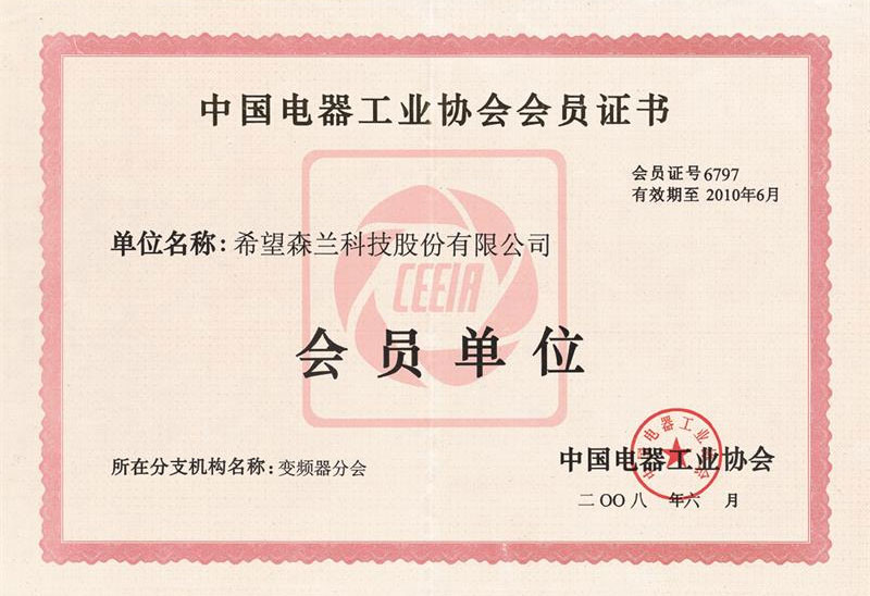 電器工業(yè)協(xié)會變頻器分會會員單位證書