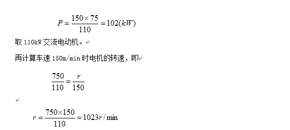 首先計算車速150m/min時所需電機的功率,考慮到紙機為恒轉(zhuǎn)矩負載,車速增高時電機功率按比例增加,于是: