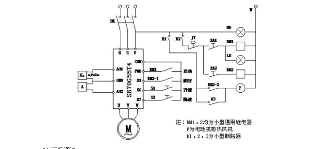 本方案選用的SB70G系列矢量控制變頻器,系國產(chǎn)主要品牌,高、中、低應(yīng)用檔次系列齊全,對主要國際著名品牌機的兼容性較為全面。用該品牌SB70G系列對西門子MM440系列變頻器進行直接代換及通訊兼容,以期進一步降低企業(yè)應(yīng)用成本。