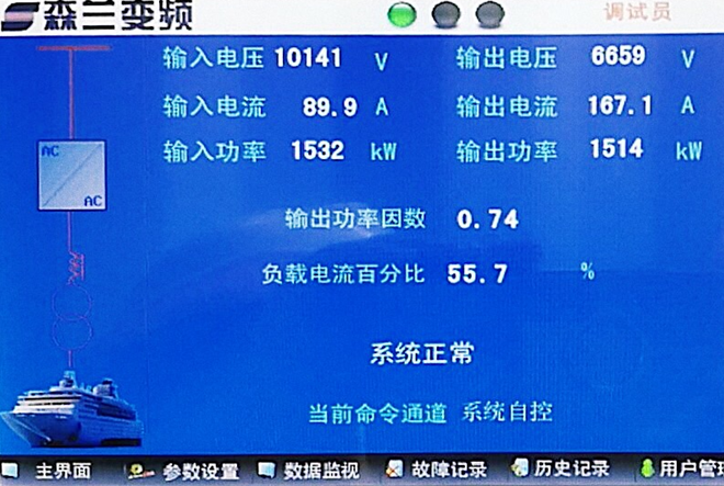 本套岸電系統(tǒng)在碼頭前沿的電纜接電箱和電纜卷盤(pán)車的設(shè)計(jì)上都運(yùn)用了國(guó)內(nèi)首創(chuàng)的防爆型設(shè)計(jì),防爆等級(jí)為IIBT4,實(shí)際大部分設(shè)備防爆等級(jí)達(dá)到了IIBT6,符合GB3836.1-2000《爆炸性氣體環(huán)境用電氣設(shè)備 第1部分:通用標(biāo)準(zhǔn)》要求,較傳統(tǒng)岸電系統(tǒng)更加安全可靠,符合?;a頭接岸電需求。本系統(tǒng)核心部分變頻電源為2套森蘭SB70P系列變頻電源,單臺(tái)容量1MVA,采成直流共母排方案。SB70P系列低壓岸電變頻電源基于森蘭22年成熟低壓平臺(tái)技術(shù)的基礎(chǔ)上,針對(duì)岸電電源應(yīng)用需求特點(diǎn)定制開(kāi)發(fā)的新一代高性能變頻電源,具有動(dòng)態(tài)響應(yīng)快,過(guò)載能力強(qiáng),控制精度高等優(yōu)點(diǎn),無(wú)論是系統(tǒng)拓?fù)浣Y(jié)構(gòu)選擇,控制性能,還是散熱系統(tǒng)設(shè)計(jì),都首屈一指。