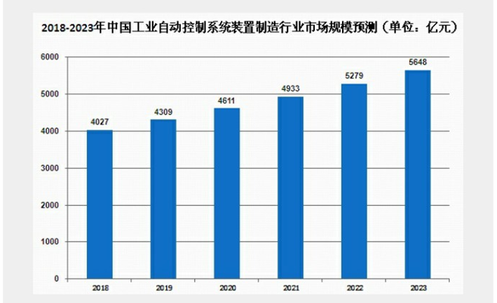 從大環(huán)境來看,產(chǎn)業(yè)升級、民生訴求和節(jié)能環(huán)保三大因素將給未來工業(yè)自動控制系統(tǒng)在新興領(lǐng)域市場發(fā)展創(chuàng)造更多的發(fā)展機會。預(yù)計未來幾年市場銷售規(guī)模增速保持在7%左右,到2023年行業(yè)銷售規(guī)模有望超過5600億元。