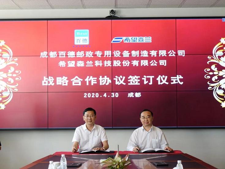 成都百德郵政專用設(shè)備制造有限公司董事長李承剛先生在簽約儀式上表示:“百德郵政22年,白手起家,從最初的鈑金發(fā)展到今天的智能化、機(jī)電信息一體化。我們注重研發(fā)、注重企業(yè)文化和團(tuán)隊建設(shè),非常期待與希望森蘭在上下游各產(chǎn)業(yè)鏈有更多更深的合作,具體到在智能化物流設(shè)備控制解決方案、企業(yè)文化、生產(chǎn)工藝流程優(yōu)化和協(xié)作等方面,加強(qiáng)合作,共同發(fā)展,做大做強(qiáng)!”