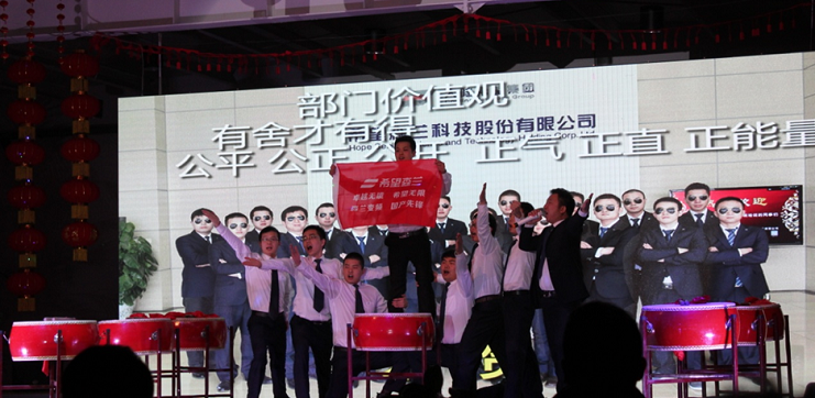 詩朗誦《沁園春·雪》配合書法“俱往矣,數(shù)風(fēng)流人物,還看今朝?!贝髿獍蹴?,既贊美了祖國山河的雄偉多嬌,又抒發(fā)了希望森蘭以“變”贏未來的抱負(fù)。邊跳邊唱的《七月火把節(jié)》歌調(diào)熱情豐富,滲透著一種“狂歡化”的團(tuán)結(jié)精神,傳達(dá)著森蘭人積極向上的思想觀念和素樸的生活態(tài)度??偨?jīng)理及高管合唱《壯志在我胸》,管那山高水也深,也不能阻擋我奔前程,為破局2017積蓄能量。