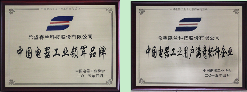 2015年4月1日,2014中國電器工業(yè)“十大”系列宣傳活動授牌儀式在中國科技會堂隆重舉行。希望森蘭受邀參加了本次盛會,并一舉榮獲“中國電器工業(yè)領(lǐng)軍品牌”、“中國電器工業(yè)用戶滿意標(biāo)桿企業(yè)”兩項(xiàng)大獎。