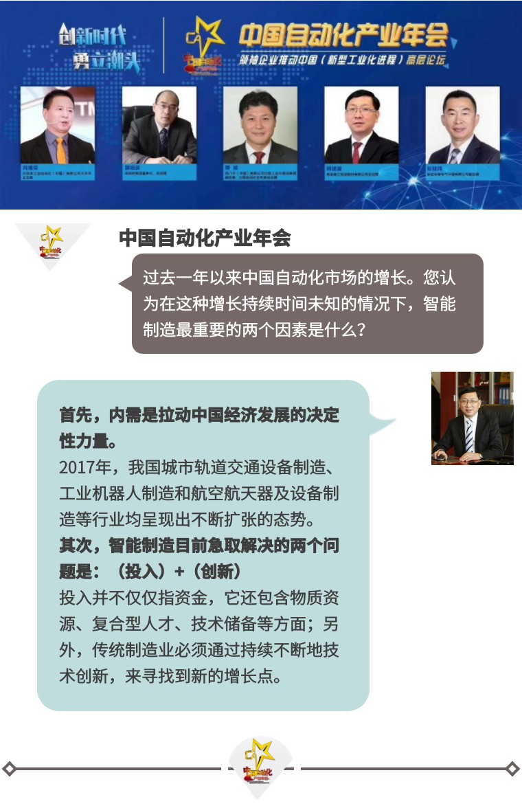 針對過去一年以來中國自動(dòng)化市場的增長的原因、持續(xù)時(shí)間,以及智能制造的組成因素等問題,論壇主持人對中國自動(dòng)化產(chǎn)業(yè)的領(lǐng)袖企業(yè)高層進(jìn)行了逐一采訪。